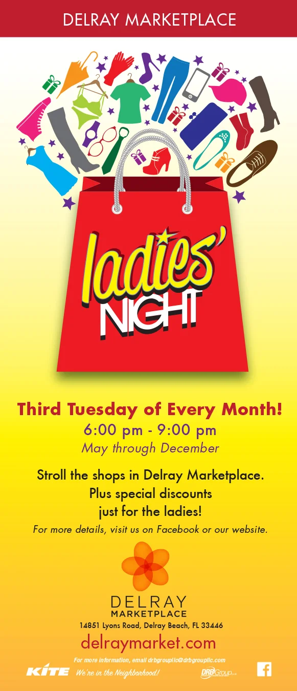 Our final Ladies’ Night is Tuesday, August 15, 2017 from 6-9pm. Stroll the shops in Delray Marketplace for specials, discounts, refreshments and more.